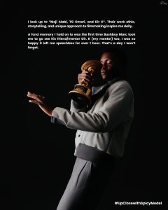 I look up to Meji Alabi, TG Omori, and Dir K. Their work ethic, storytelling, and unique approach to filmmaking inspire me daily.