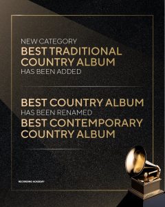 The former Best Country Album has now been renamed Best Contemporary Country Album, clarifying its focus on modern and progressive sounds within the genre.